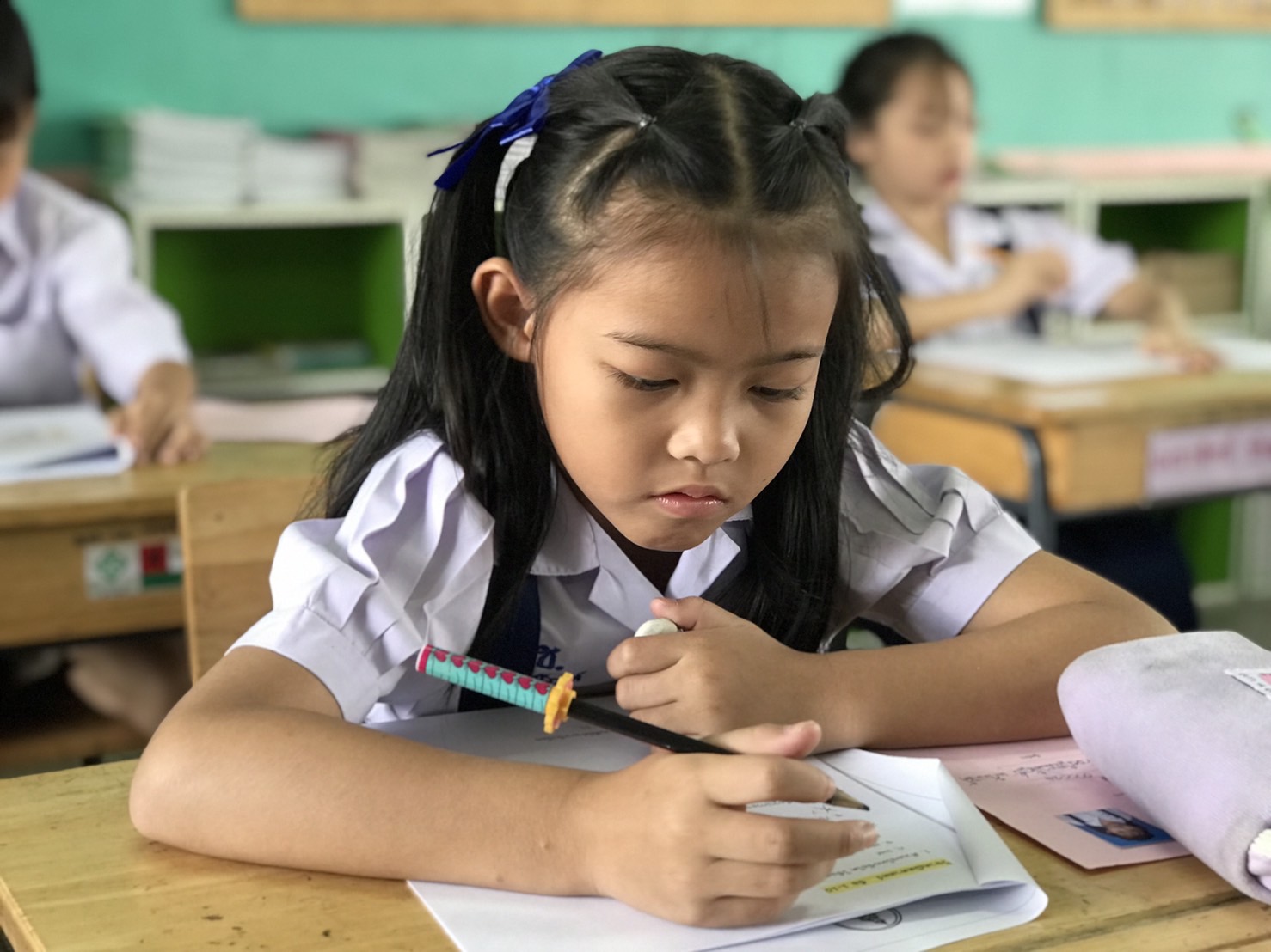• บรรยากาศการสอบคัดเลือกนักเรียนเข้าห้องเรียนพิเศษ ชั้นประถมศึกษาปีที่ 2 โปรแกรม Science Math English Program [SMEP]