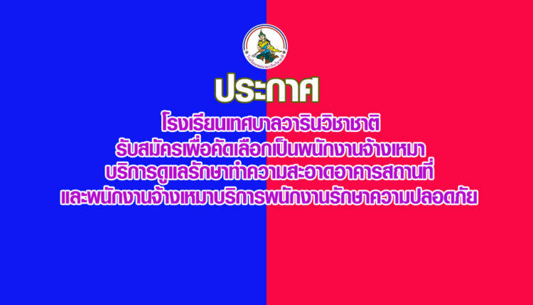 ด้วยโรงเรียนเทศบาลวารินวิชาชาติ มีความประสงค์รับสมัครบุคคลเพื่อคัดเลือกเป็นพนักงานจ้างเหมาบริการดูแลรักษาทำความสะอาดอาคารสถานที่ จำนวน ๑ อัตรา และพนักงานจ้างเหมาบริการพนักงานรักษาความปลอดภัย ปฏิบัติงานในหน่วยงานราชการ โรงเรียนเทศบาลวารินวิชาชาติ ตำบลวารินชำราบ อำเภอวารินชำราบ จังหวัดอุบลราชธานีดังรายละเอียดที่แนบมานี้