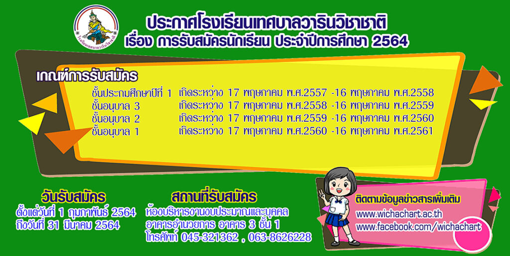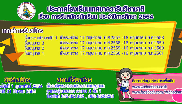 เปิดรับสมัครนักเรียนประจำปีการศึกษา 2564