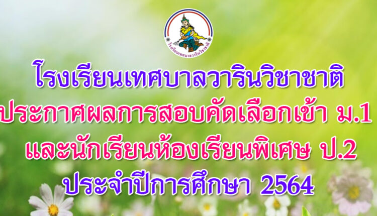 ประกาศผลการสอบคัดเลือกเข้า ม.1 และห้องเรียนพิเศษ ป.2 ประจำปีการศึกษา 2564