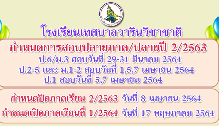 กำหนดสอบปลายภาคเรียนที่ 2/2563 และกำหนดปิด/เปิดภาคเรียน 1/2564
