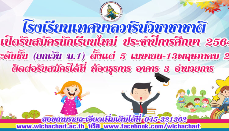 รับสมัครนักเรียนใหม่ ประจำปีการศึกษา 2564