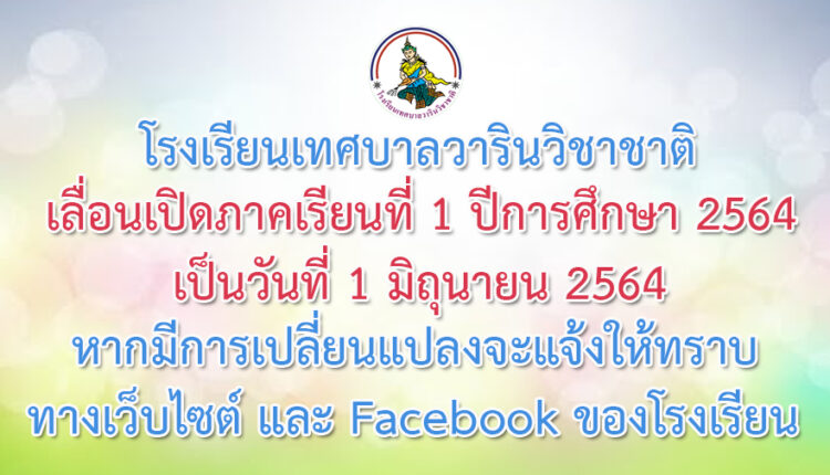 แจ้งเลื่อนเปิดภาคเรียนที่ 1 ปีการศึกษา 2564