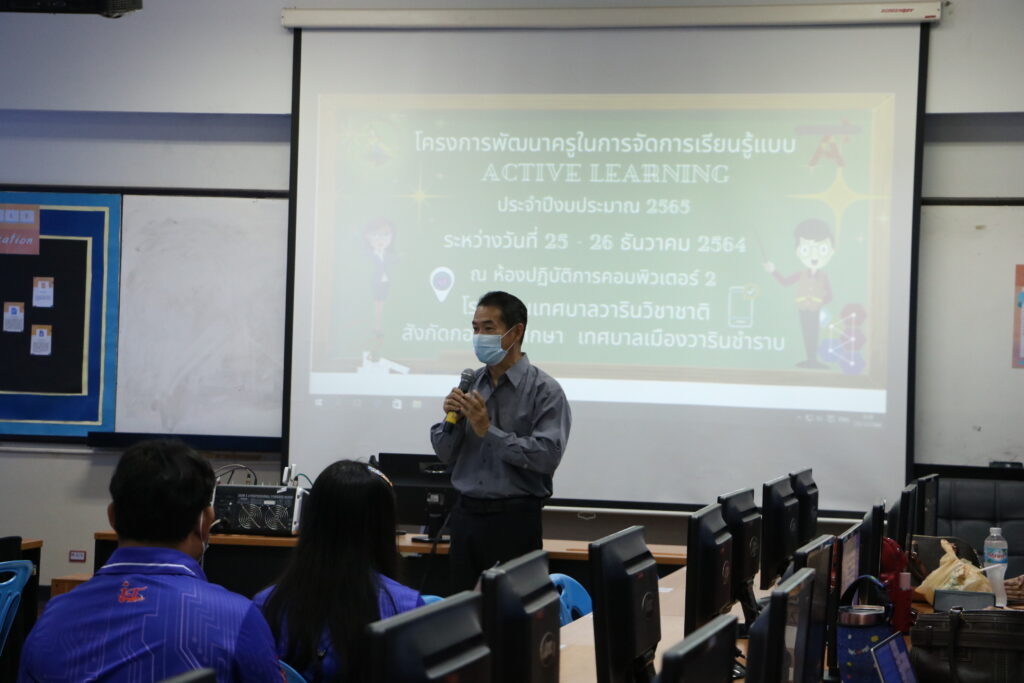 วันนี้ 25 ธันวาคม 2564 โรงเรียนเทศบาลวารินวิชาชาติ จัดโครงการพัฒนาครูในการจัดการเรียนรู้แบบ ACTIVE LEARNING ประจำปีงบประมาณ 2565 รุ่นที่ 3 ณ ห้องปฏิบัติการคอมพิวเตอร์ 2 โดยได้รับเกียรติจากนายบุญยง จินตนะกุล รองนายกเทศมนตรี เมืองวารินชำราบ เป็นประธานในพิธี โครงการดังกล่าวจัดอบรมให้แก่คณะครู ระหว่างวันที่ 25-26 ธันวาคม 2564 จำนวน 2 รุ่น รุ่นละ 25 คน