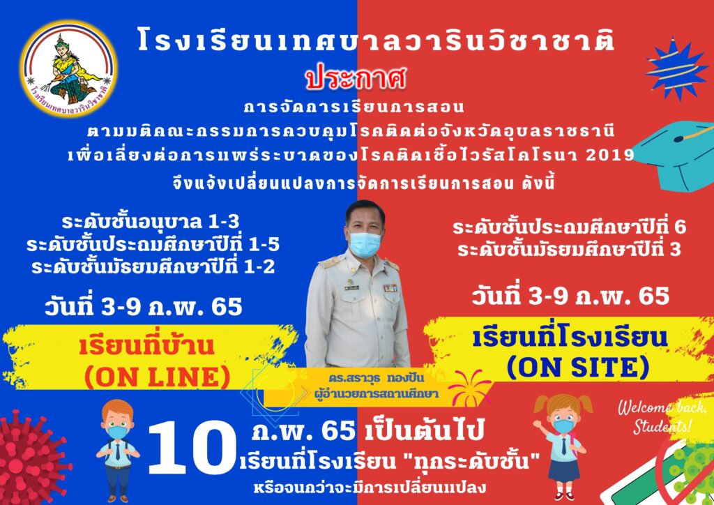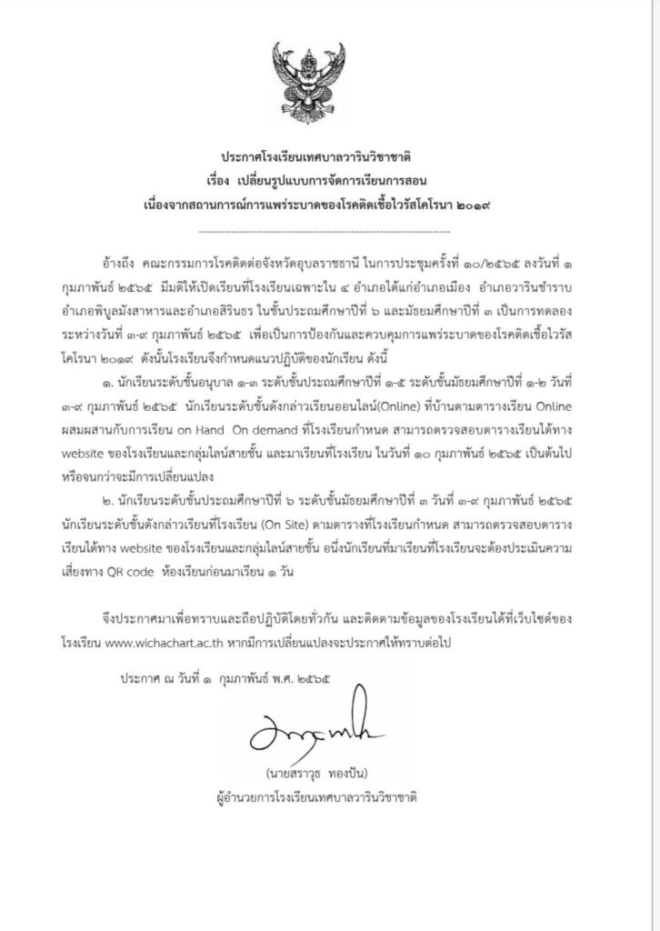 กลุ่มบริหารงานวิชาการข่าวประชาสัมพันธ์ ประกาศเปลี่ยนแปลงการจัดการเรียนการสอนเนื่องจากการแพร่ระบาดของโรคติดเชื้อไวรัสโคโรนา 2019 By ปรีชากร นามแสงผา On ก.พ. 2, 2022 0 675 Share 0 675 Share FacebookTwitter