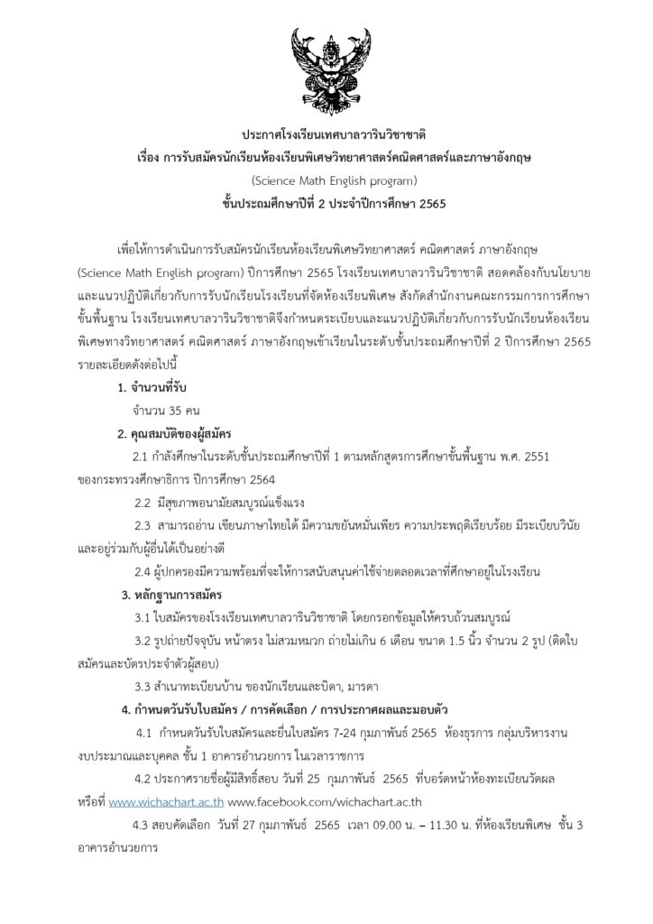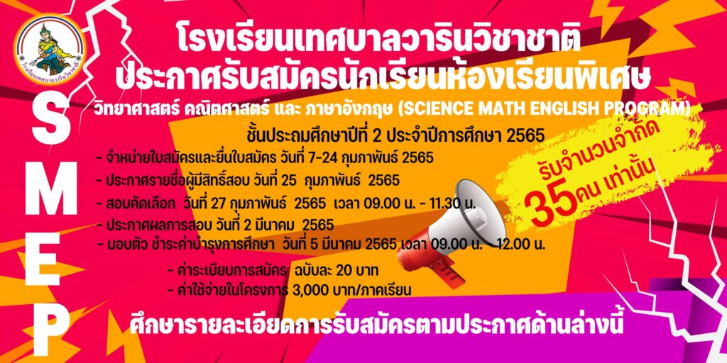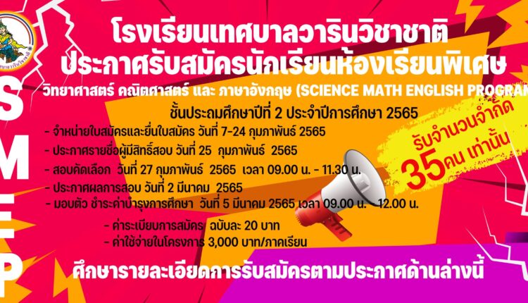 กลุ่มบริหารงานวิชาการข่าวประชาสัมพันธ์ รับสมัครนักเรียนห้องเรียนพิเศษ (Science Math English program) ระดับชั้นประถมศึกษาปีที่ 2 ประจำปีการศึกษา 2565 By ปรีชากร นามแสงผา Last updated ก.พ. 7, 2022 0 565 Share 0 565 Share FacebookTwitter