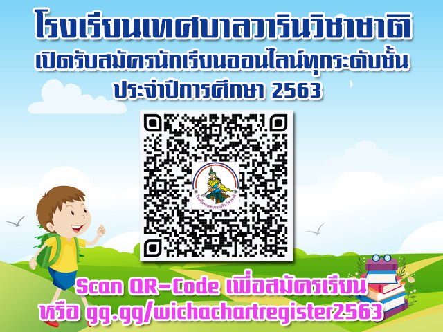 โรงเรียนเทศบาลวารินวิชาติ เปิดรับสมัครนักเรียนเข้าเรียนต่อในโรงเรียนตั้งแต่ อนุบาล 1-3 ชั้นประถมศึกษาปีที่ 2-6 และชั้นมัธยมศึกษาปีที่ 2-3 เข้าเรียนในโรงเรียนภาคเรียนที่ 1 ปีการศึกษา 2563 หากท่านต้องการนำบุตรหลานเข้าเรียนต่อที่โรงเรียนเทศบาลวารินวิชาชาติ ให้ปฏิบัติดังนี้