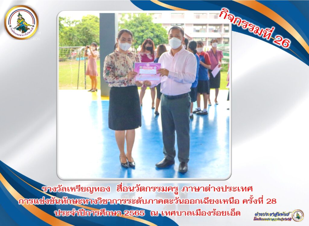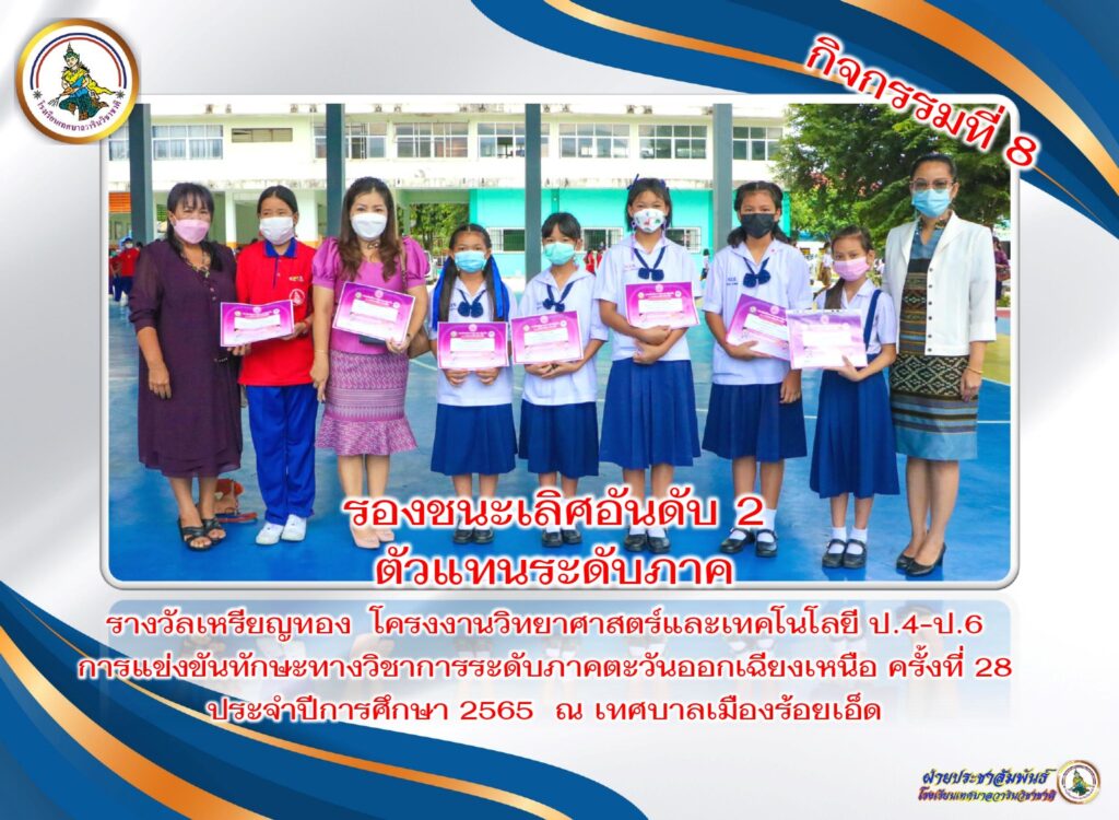 สรุปผลกิจกรรมแข่งขัน โรงเรียนเทศบาลวารินวิชาชาติ เทศบาลเมืองวารินชำราบ จังหวัดอุบลราชธานี การแข่งขันทักษะทางวิชาการระดับภาคตะวันออกเฉียงเหนือ ครั้งที่ 28 ณ เทศบาลเมืองร้อยเอ็ด ประจำปีการศึกษา 2565