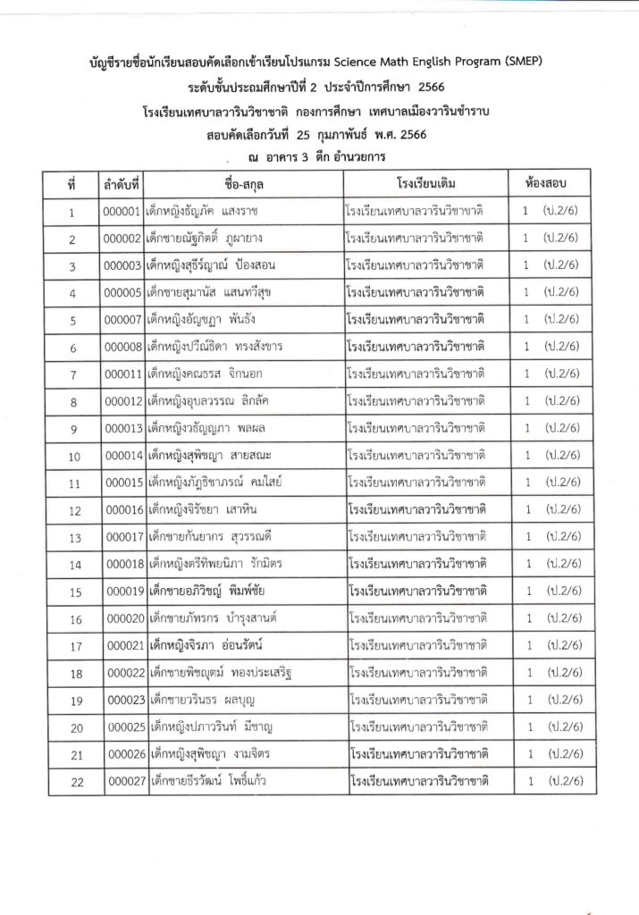 ข่าวประชาสัมพันธ์ ประกาศรายชื่อนักเรียนสอบคัดเลือกเข้าโปรแกรม Science Math English Program (SMEP) ระดับชั้นประถมศึกษาปีที่ 2 ประจำปีการศึกษา 2566 By ปรีชากร นามแสงผา On ก.พ. 22, 2023 0 821 Share 0 821 Share FacebookTwitter