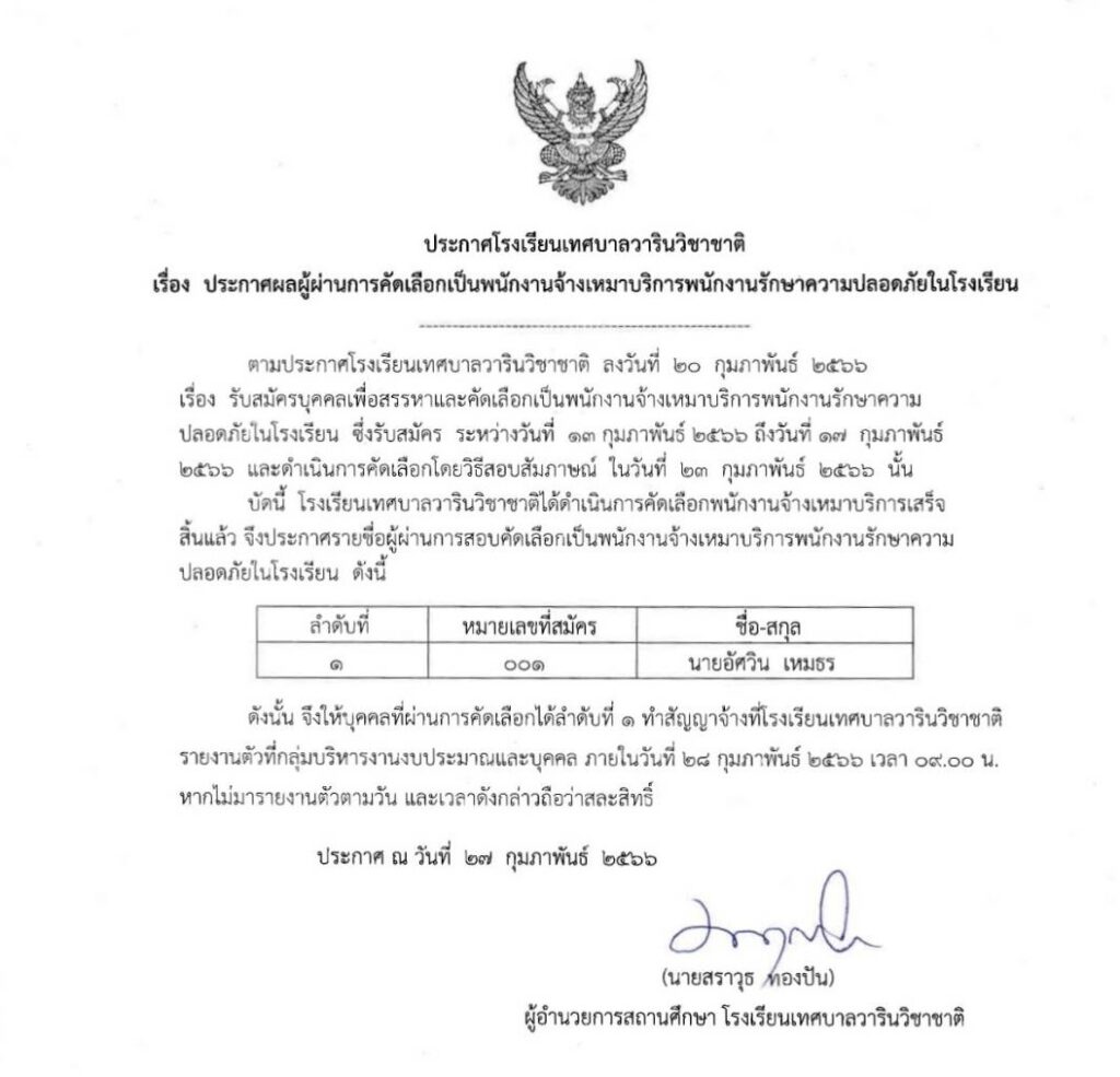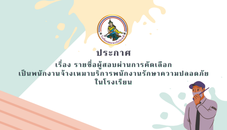 ประกาศ รายชื่อผู้สอบผ่านการคัดเลือกเป็นพนักงานจ้างเหมาบริการพนักงานรักษาความปลอดภัยในโรงเรียน