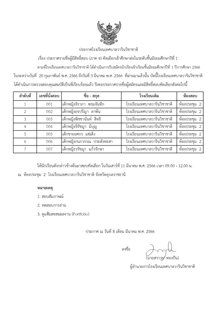 กลุ่มบริหารงานงบประมาณและบุคคลข่าวประชาสัมพันธ์ ประกาศรายชื่อผู้มีสิทธิ์สอบ (ภาค ข) คัดเลือกเข้าศึกษาต่อในระดับชั้นมัธยมศึกษาปีที่ 1 ปีการศึกษา 2566 By ปรีชากร นามแสงผา Last updated มี.ค. 9, 2023 0 14,647 Share 0 14,647 Share FacebookTwitter