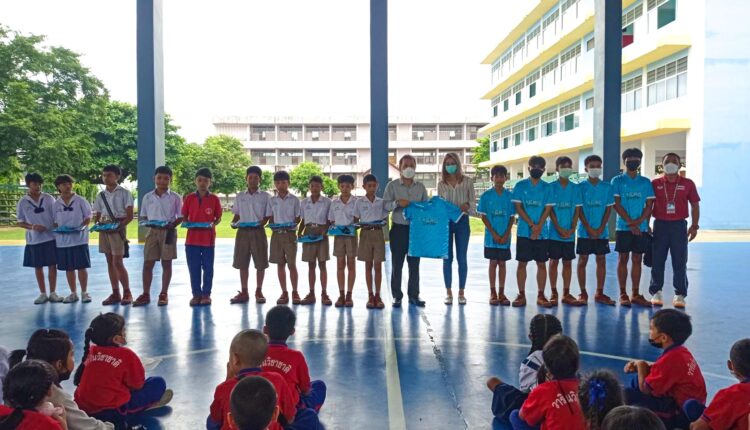 ดาบตำรวจธนวัฒน์ ทรงสังขาร มอบเสื้อกีฬาให้แก่นักกรีฑาโรงเรียน
