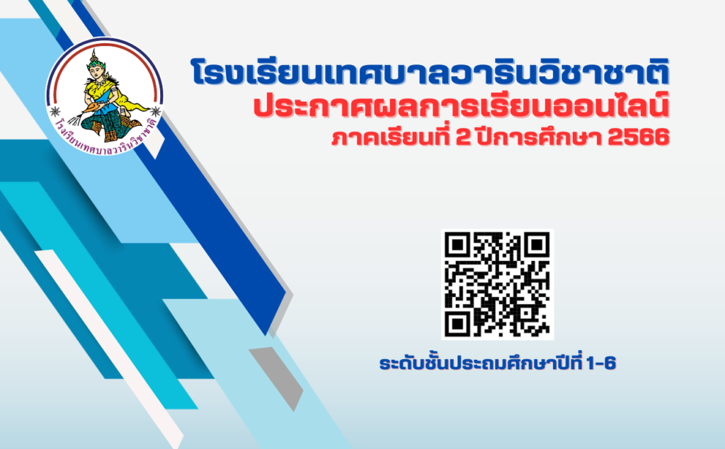โรงเรียนเทศบาลวารินวิชาชาติ ขอประกาศผลการเรียนออนไลน์ของนักเรียนภาคเรียนที่ 2 ปีการศึกษา 2566