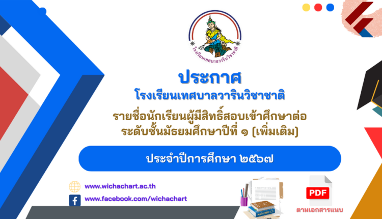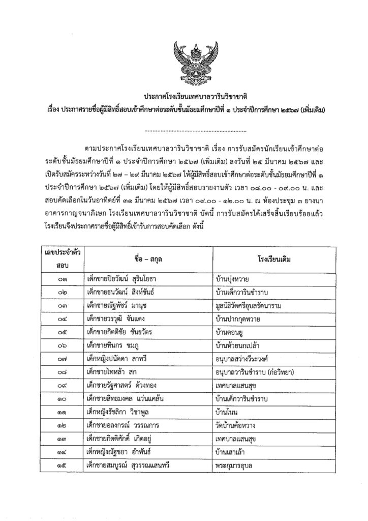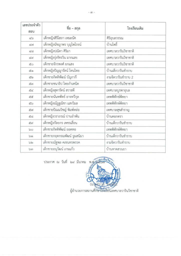 ประกาศโรงเรียนเทศบาลวารินวิชาชาติ