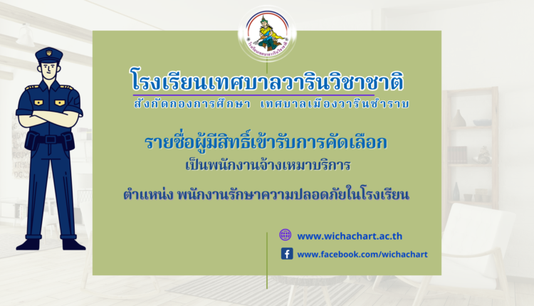 รายชื่อผู้มีสิทธิ์เข้ารับการคัดเลือกเป็นพนักงานจ้างเหมาบริหาร ตำแหน่ง พนักงานรักษาความปลอดภัยในโรงเรียน