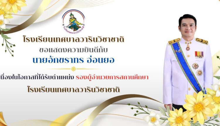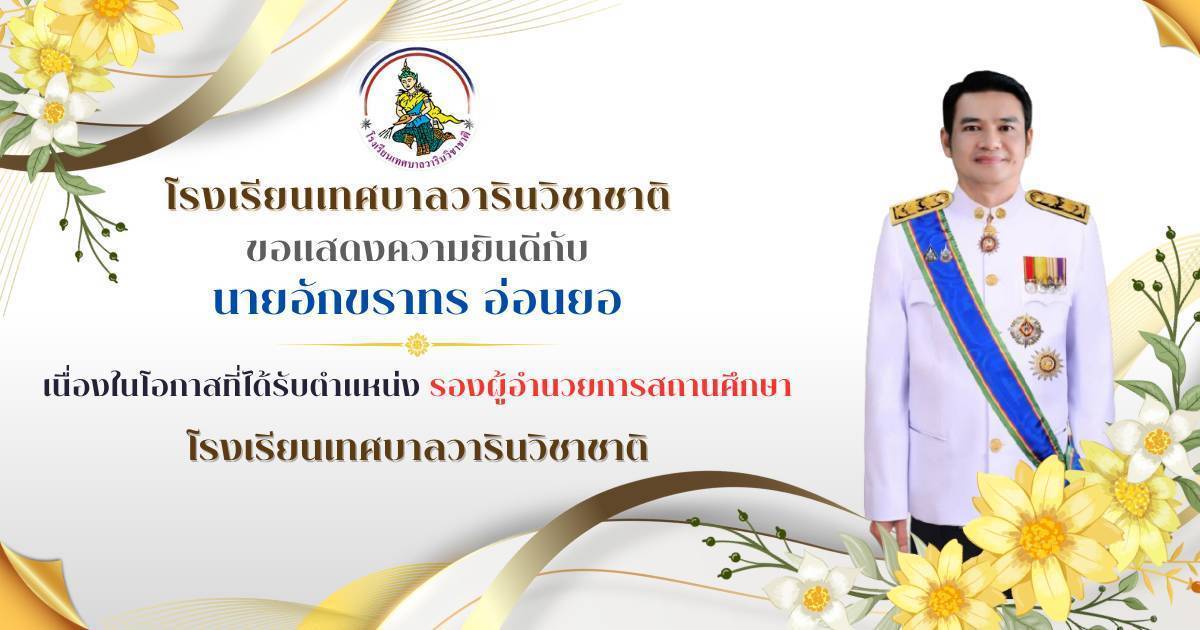 โรงเรียนเทศบาลวารินวิชาชาติ ยินดีต้อนรับ นายอักขราทร อ่อนยอ เนื่องในโอกาสดำรงตำแหน่งรองผู้อำนวยการสถานศึกษา โรงเรียนเทศบาลวารินวิชาชาติ
