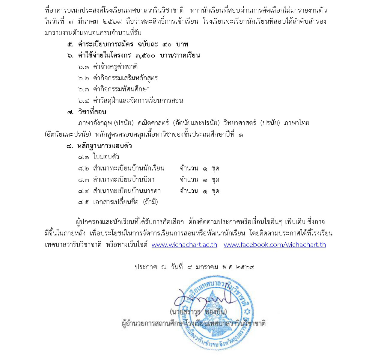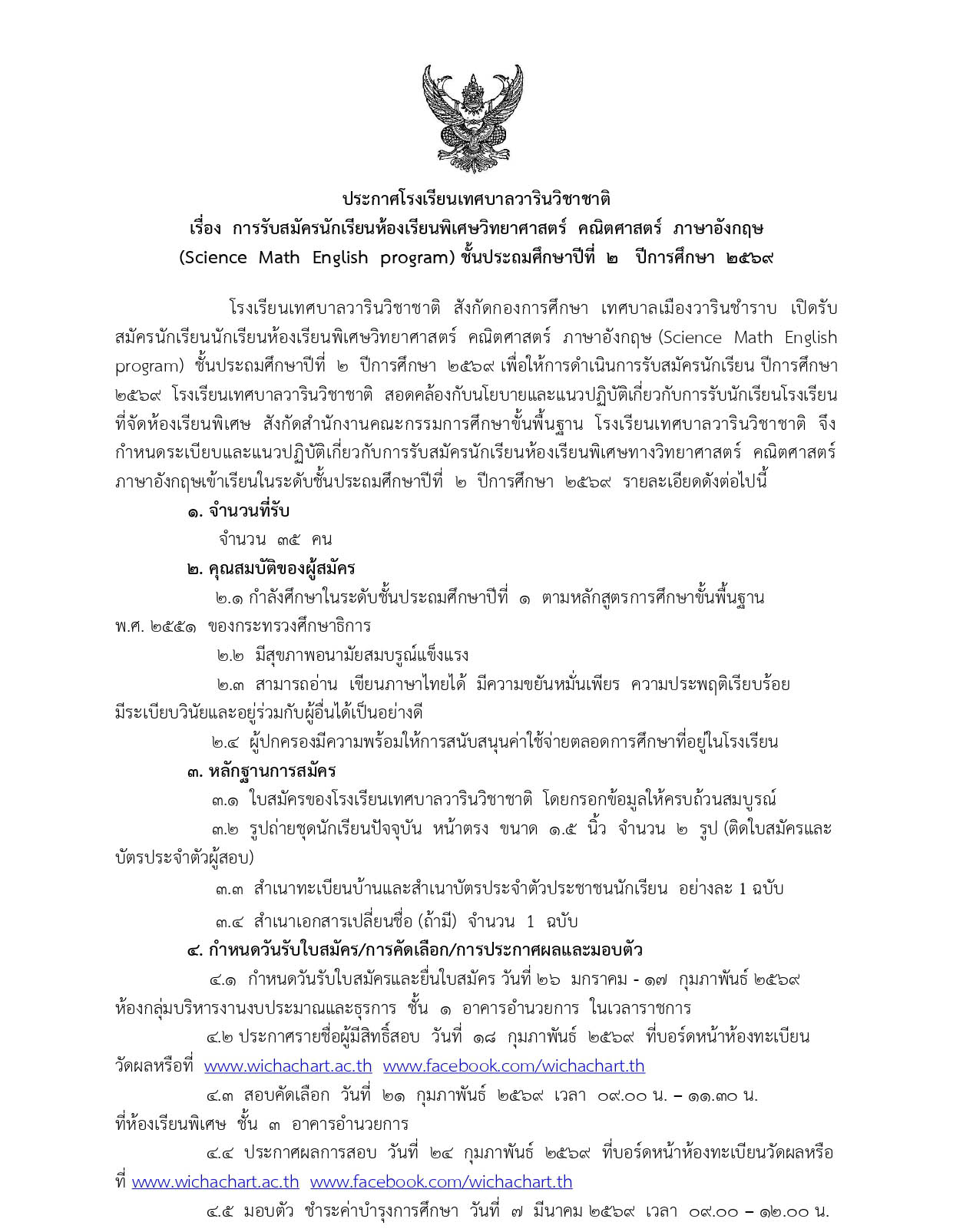 ประกาศโรงเรียนเทศบาลวารินวิชาชาติ