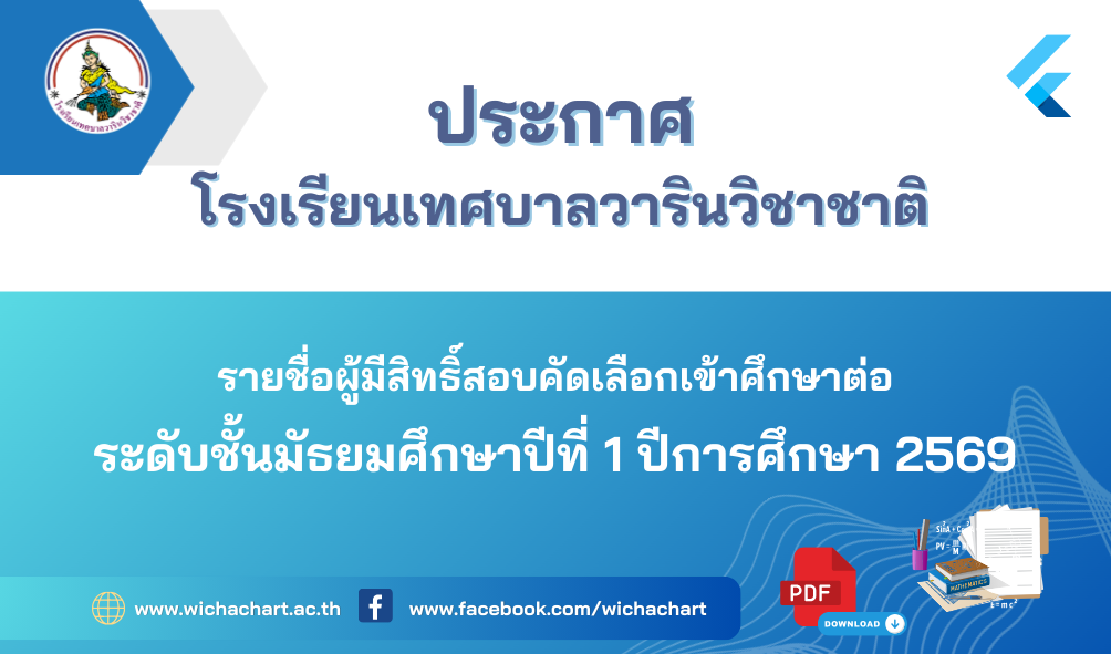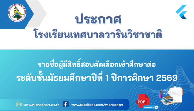 เข้าศึกษาต่อในระดับชั้นมัธยมศึกษาปีที่ 1 ประจำปีการศึกษา 2569