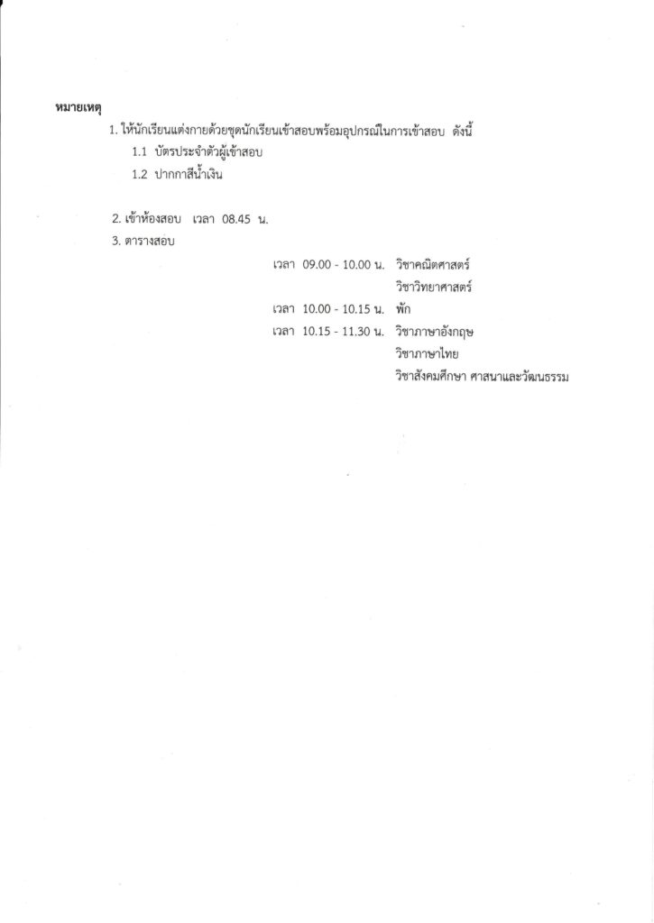 รายชื่อนักเรียนผู้มีสิทธิ์สอบคัดเลือก