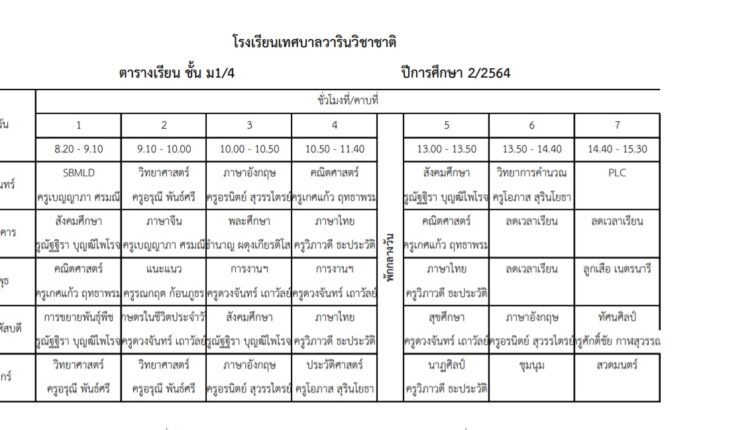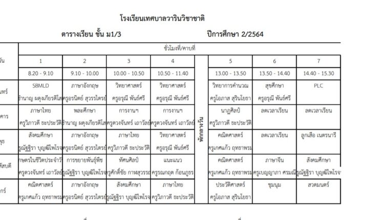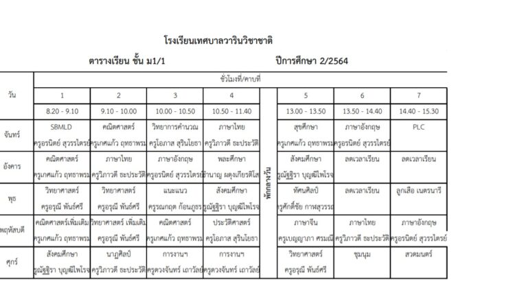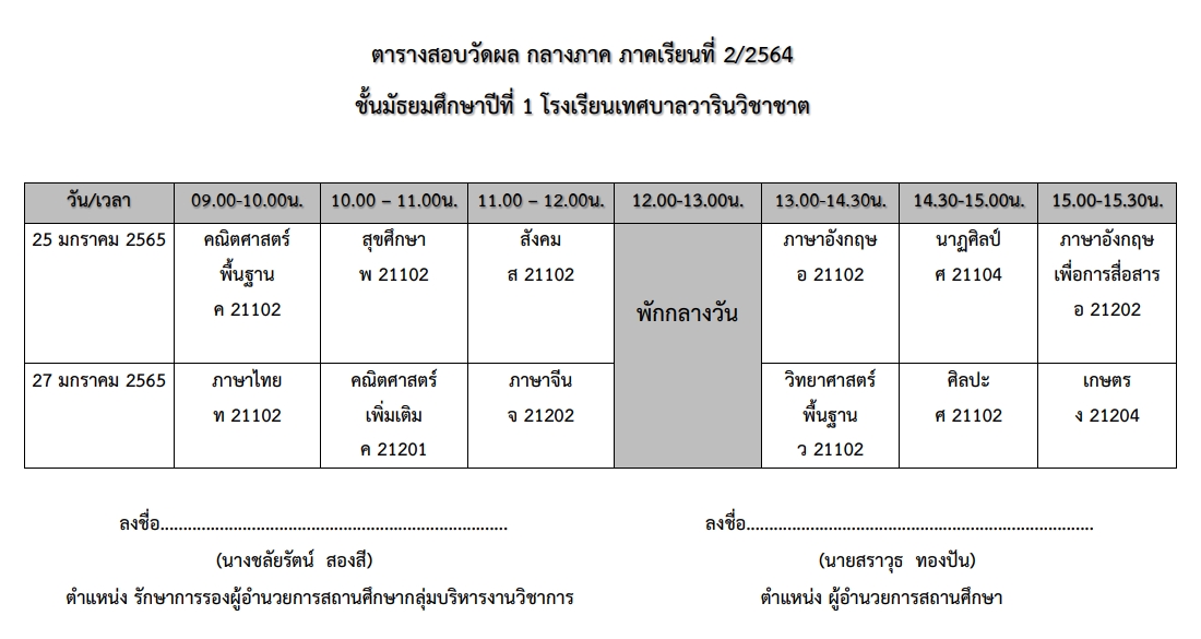 ตารางสอบกลางภาคเรียน สายชั้น ม.1